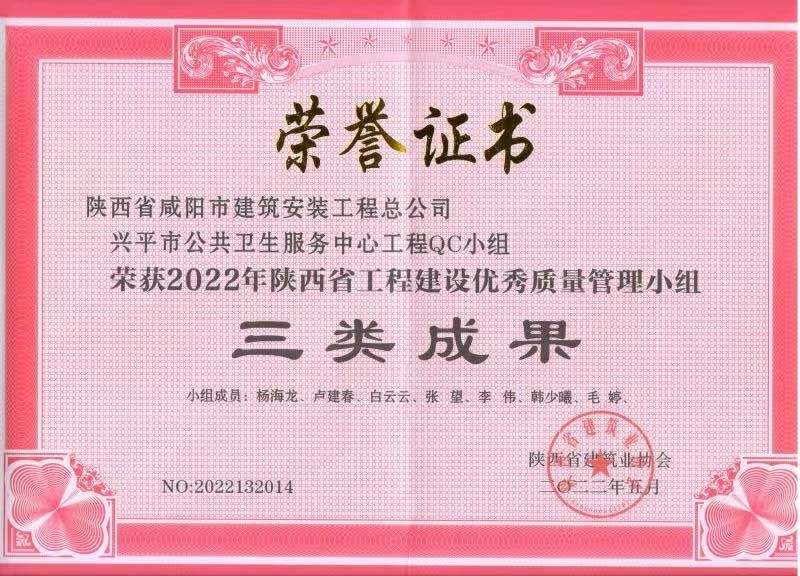2022年度QC小組活動成果證書
